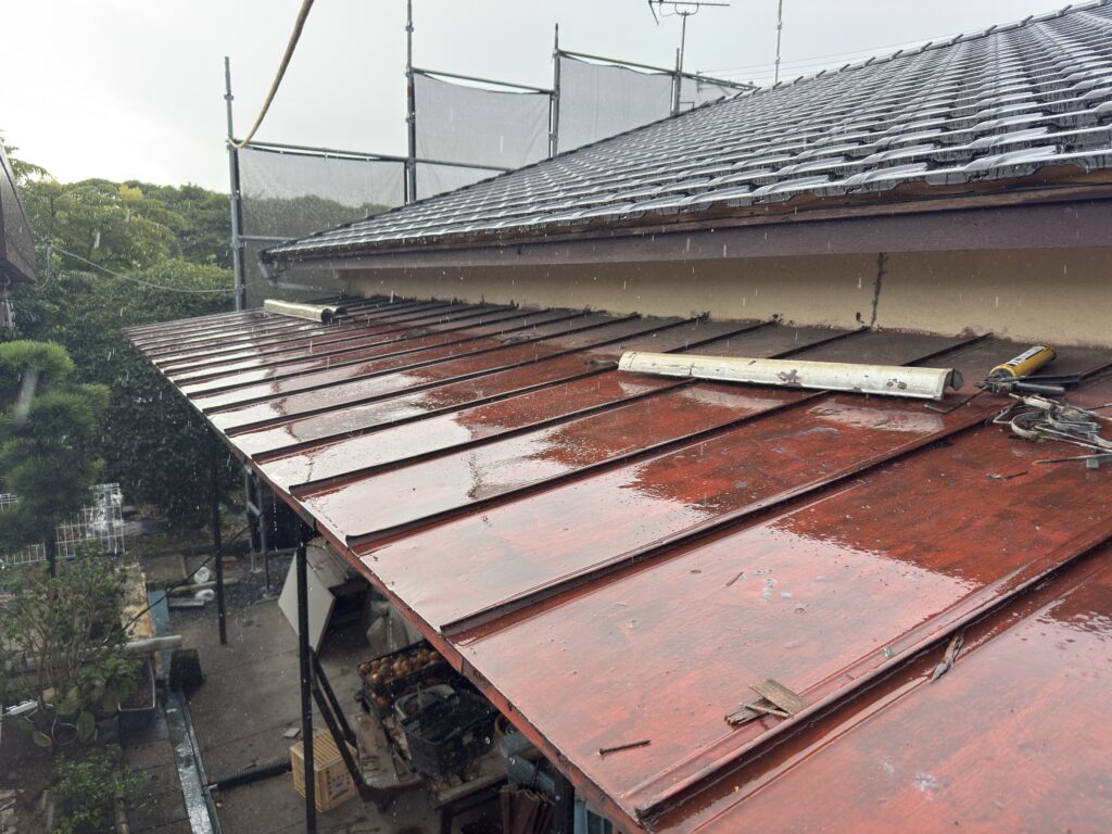 唐船にて下屋板金工事